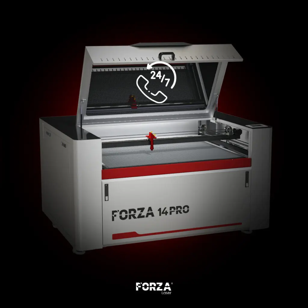 The Forza 14 Pro high-power CO2 laser cutter features an upgraded controller and motor, allowing you to work longer and increase productivity.